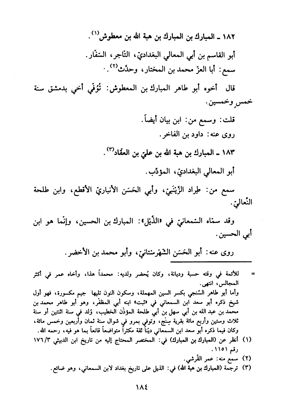 182- الْمُبَارَك بْن الْمُبَارَك بْن هبة اللَّه بْن معطوش [1] .