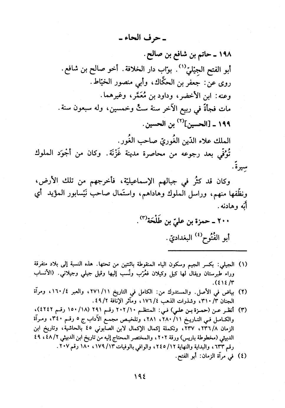 [3] انظر عن (حمزة بن علي) في: المنتظم 10/ 202 رقم 291 (18/ 150 رقم 4242) ، والكامل في التاريخ 11/ 280، 281، وتلخيص مجمع الآداب ج 5 رقم 340، ومرآة الزمان 8/ 236، 237، وتكملة إكمال الإكمال لابن الصابوني 45 بالحاشية، وتاريخ ابن الدبيثي (مخطوطة باريس) ورقة 202، والمختصر المحتاج إليه من تاريخ ابن الدبيثي 2/ 48، 49 رقم 633، والبداية والنهاية 12/ 245، والوافي بالوفيات 13/ 179، 180 رقم 207.
