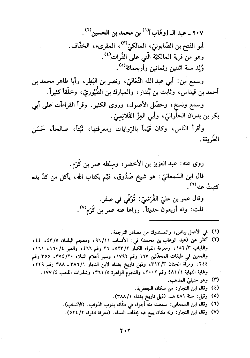 207- عبد ال [وهّاب] [1] بْنِ مُحَمَّدِ بْنِ الْحُسَيْن [2] .