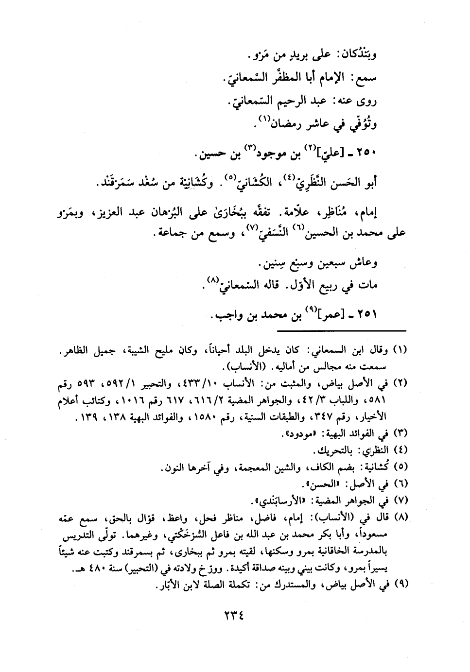 [2] في الأصل بياض، والمثبت من: الأنساب 10/ 433، والتحبير 1/ 592، 593 رقم 581، واللباب 3/ 42، والجواهر المضية 2/ 616، 617 رقم 1016، وكتائب أعلام الأخيار، رقم 347، والطبقات السنية، رقم 1580، والفوائد البهية 138، 139.