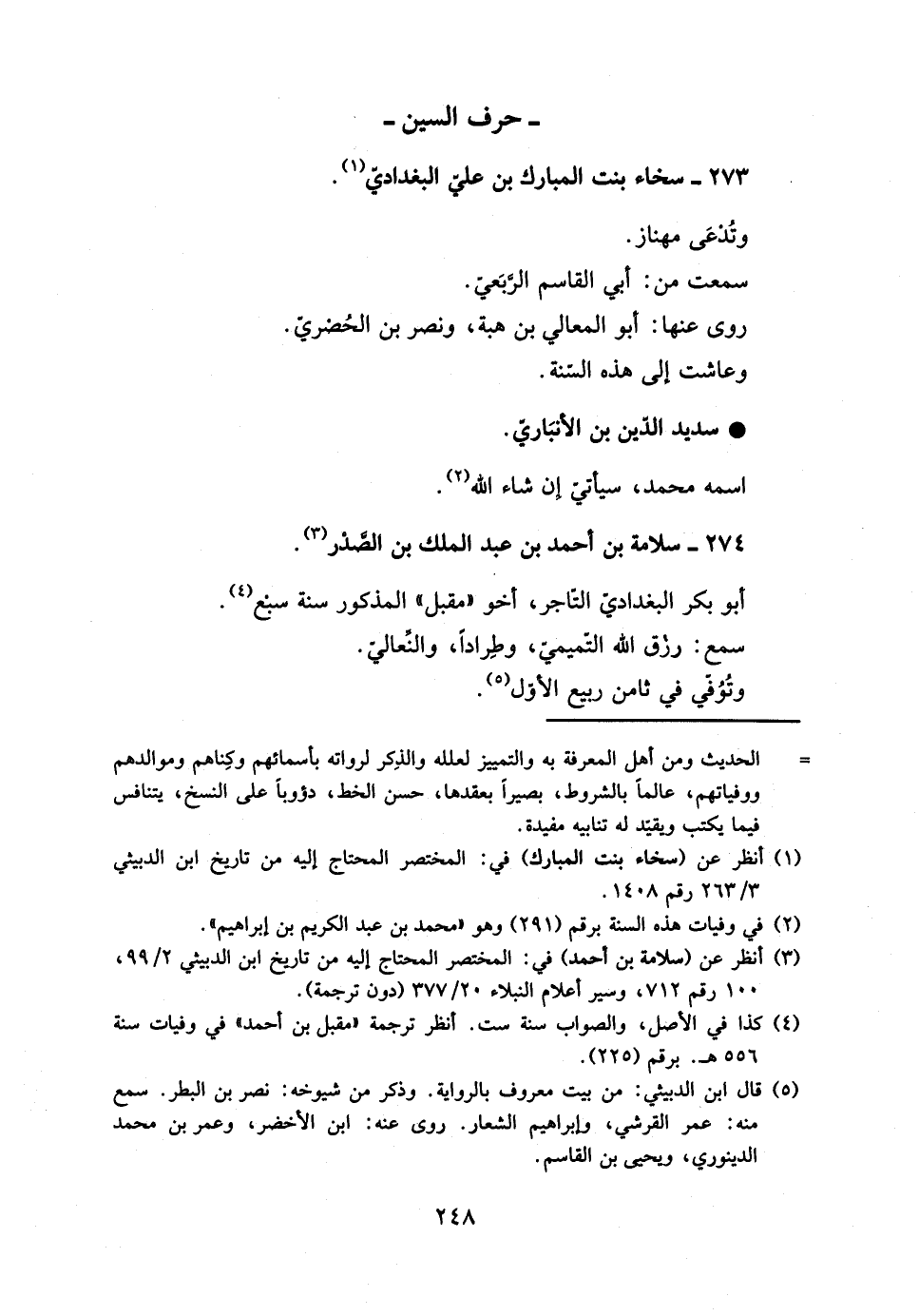 273- سخاء بِنْت المبارك بْن عليّ البغداديّ [1] .