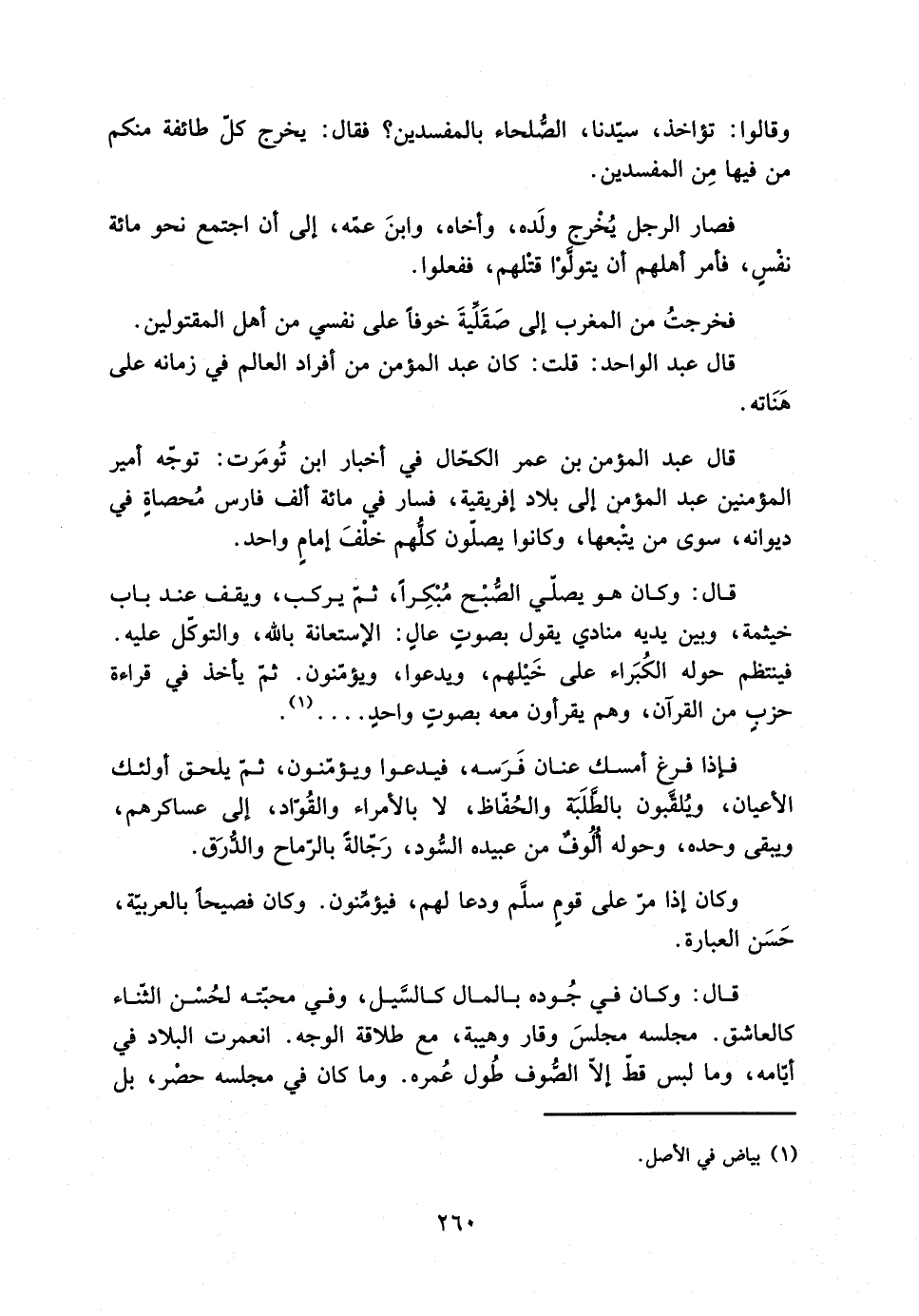قال عَبْد الواحد: قلت: كان عَبْد المؤمن من أفراد العالم فِي زمانه على هَنَاته.