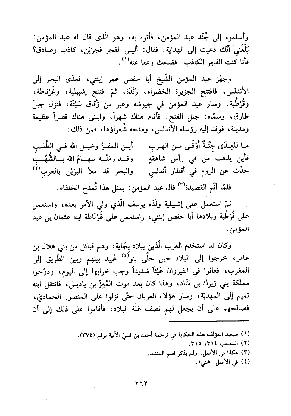 فَلَمّا أتمّ القصيدة [3] قال عَبْد المؤمن: بمثل هذا تُمدح الخلفاء.