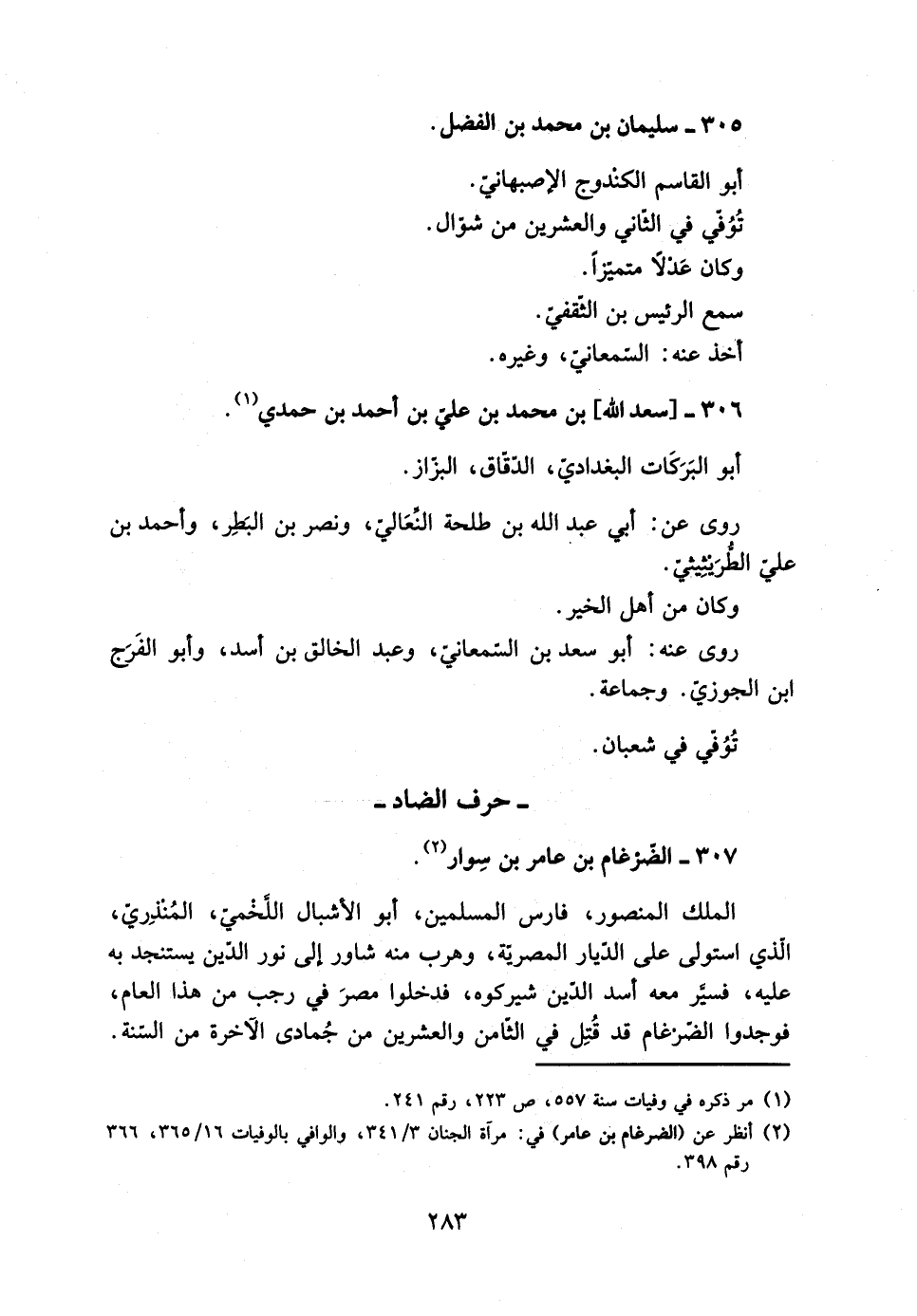 [2] انظر عن (الضرغام بن عامر) في: مرآة الجنان 3/ 341، والوافي بالوفيات 16/ 365، 366 رقم 398.