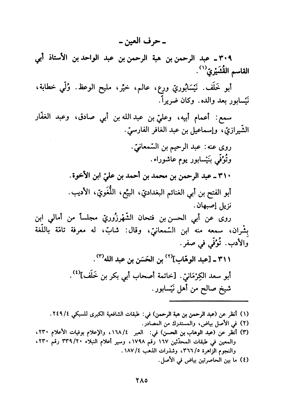 309- عَبْد الرَّحْمَن بْن هبة الرَّحْمَن بن عبد الواحد بن الأستاذ أبي القاسم القُشَيْريّ [1] .