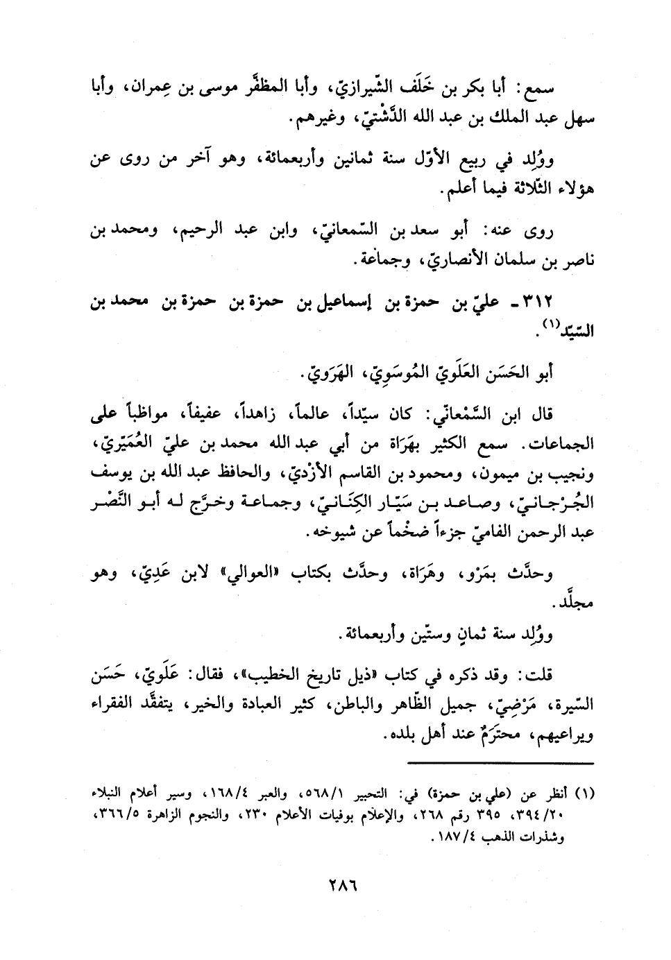 312- عليّ بْن حمزة بْن إِسْمَاعِيل بْن حمزة بْن حمزة بْن مُحَمَّد بْن السّيّد [1] .