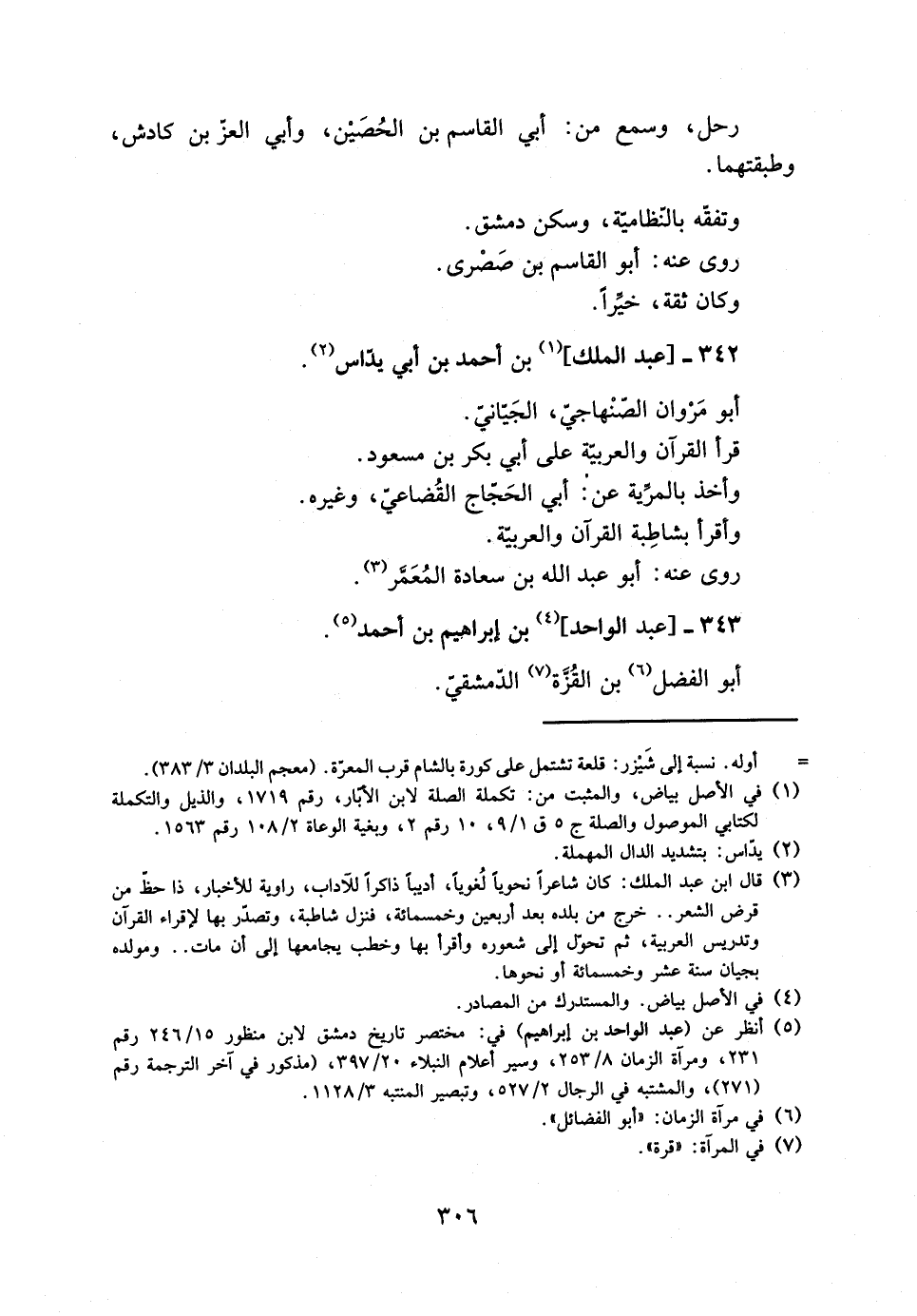 [5] انظر عن (عبد الواحد بن إبراهيم) في: مختصر تاريخ دمشق لابن منظور 15/ 246 رقم 231، ومرآة الزمان 8/ 253، وسير أعلام النبلاء 20/ 397، (مذكور في آخر الترجمة رقم (271) ، والمشتبه في الرجال 2/ 527، وتبصير المنتبه 3/ 1128.