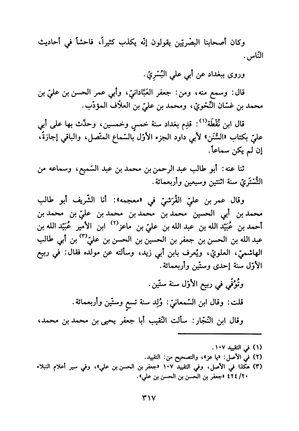 وقال ابن النّجّار: سَأَلت النّقيب أَبَا جَعْفَر يحيى بن محمد بن محمد،