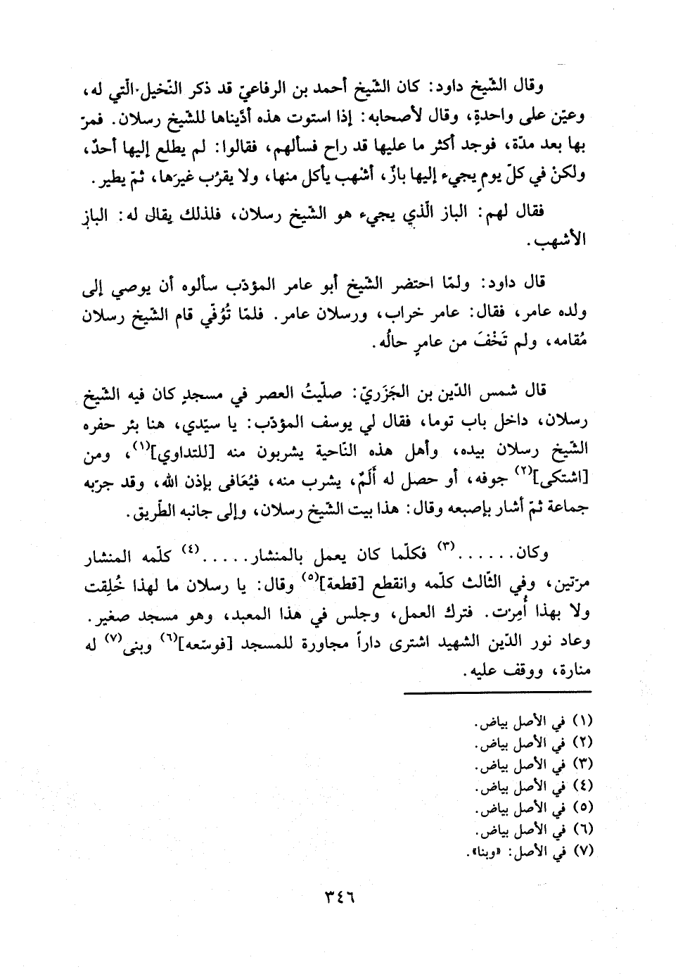وكان..... [3] فكلّما كان يعمل بالمنشار..... [4] كلّمه المنشار مرّتين، وفي الثّالث كلّمه وانقطع [قطعة] [5] وقال: يا رسلان ما لهذا خُلِقت ولا بهذا أُمِرتْ. فترك العمل، وجلس فِي هذا المعبد، وهو مسجد صغير.