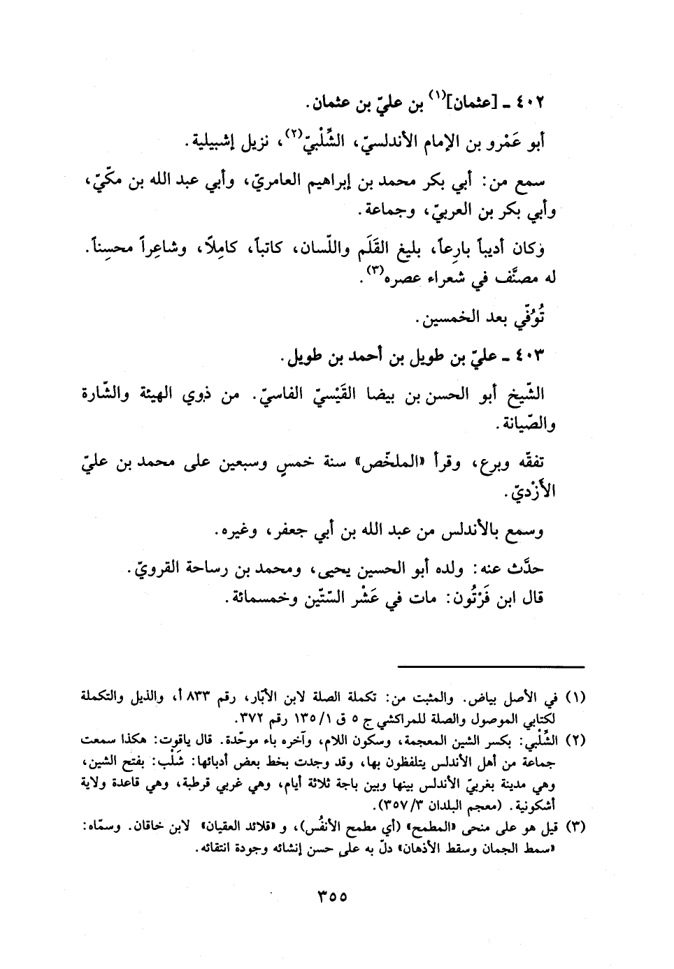 [2] الشّلبي: بكسر الشين المعجمة، وسكون اللام، وآخره باء موحّدة. قال ياقوت: هكذا سمعت جماعة من أهل الأندلس يتلفظون بها، وقد وجدت بخط بعض أدبائها: شلب: بفتح الشين، وهي مدينة بغربيّ الأندلس بينها وبين باجة ثلاثة أيام، وهي غربي قرطبة، وهي قاعدة ولاية أشكونية. (معجم البلدان 3/ 357) .