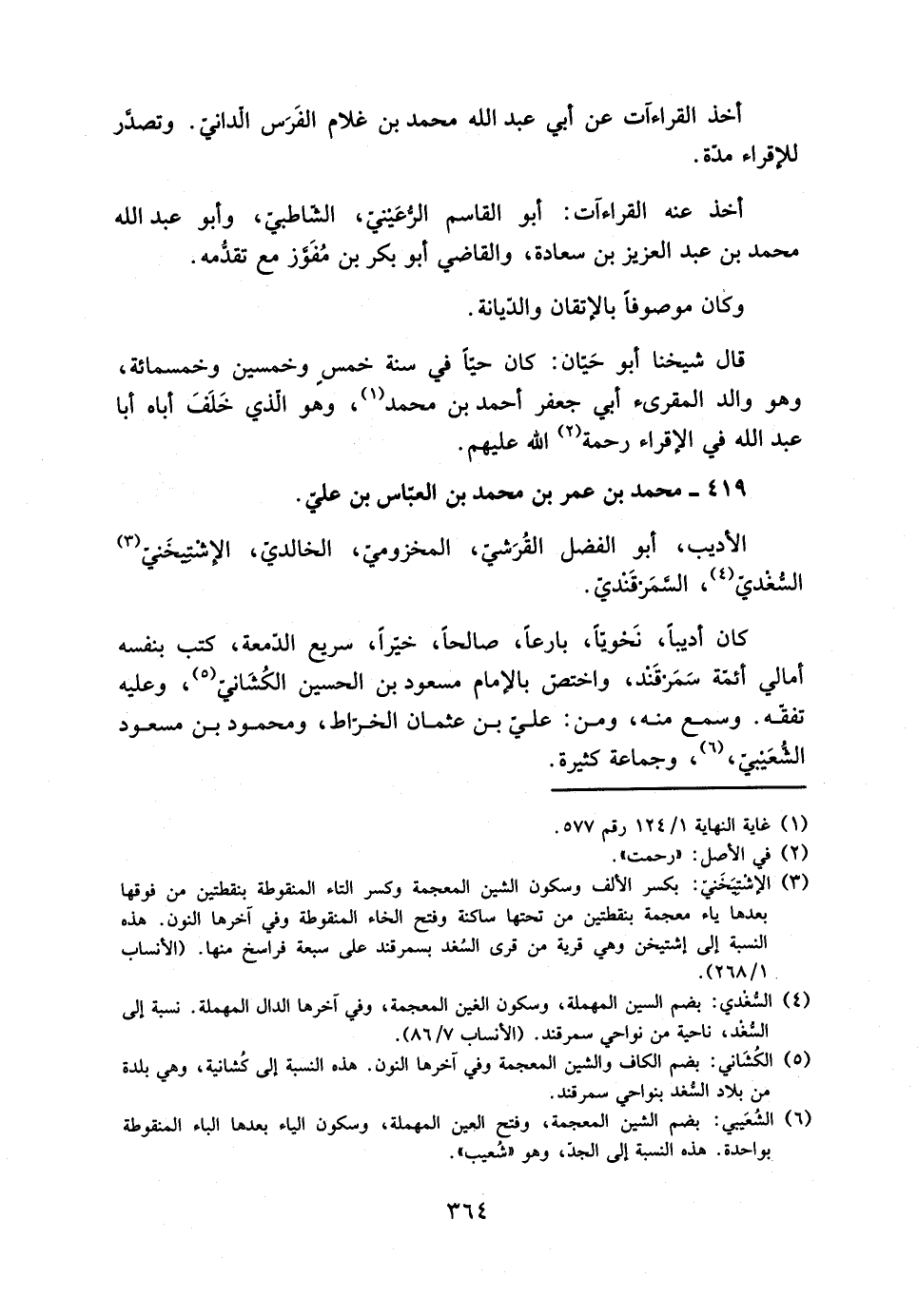 [4] السّغدي: بضم السين المهملة، وسكون الغين المعجمة، وفي آخرها الدال المهملة. نسبة إلى السّغد، ناحية من نواحي سمرقند. (الأنساب 7/ 86) .