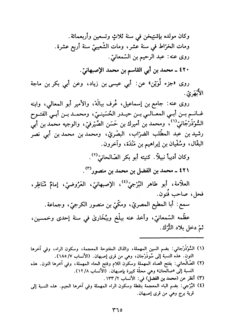 [4] البرجي: بضم الباء المعجمة بنقطة وسكون الراء المهملة وفي آخرها الجيم. هذه النسبة إلى قرية برج وهي من قرى أصبهان.