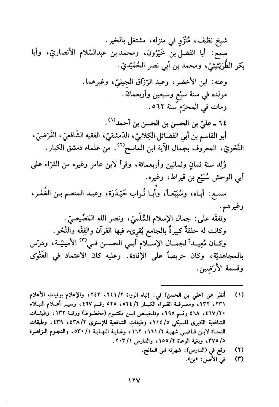 [1] انظر عن (علي بن الحسن) في: إنباه الرواة 2/ 241، 242، والإعلام بوفيات الأعلام 231، 232، ومعرفة القراء الكبار 2/ 524، 525 رقم 467، وسير أعلام النبلاء 20/ 467، 468 رقم 295، وتلخيص ابن مكتوم (مخطوط) ورقة 132، وطبقات الشافعية الكبرى للسبكي 5/ 214، وطبقات الشافعية للإسنويّ 2/ 438، 439، وطبقات النحاة لابن قاضي شهبة 2/ 161، 162، وغاية النهاية 1/ 530، والنجوم الزاهرة 5/ 375، وبغية الوعاة 2/ 155، والدارس 1/ 203.