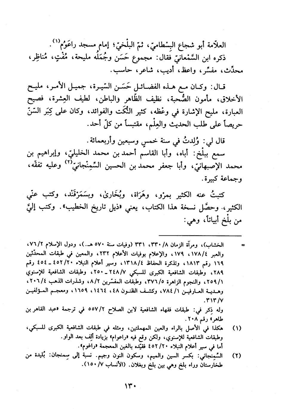 [2] السّمنجاني: بكسر السين والميم، وسكون النون وجيم. نسبة إلى سمنجان: بليدة من طخارستان وراء بلخ وهي بين بلخ وبغلان. (الأنساب 7/ 150) .