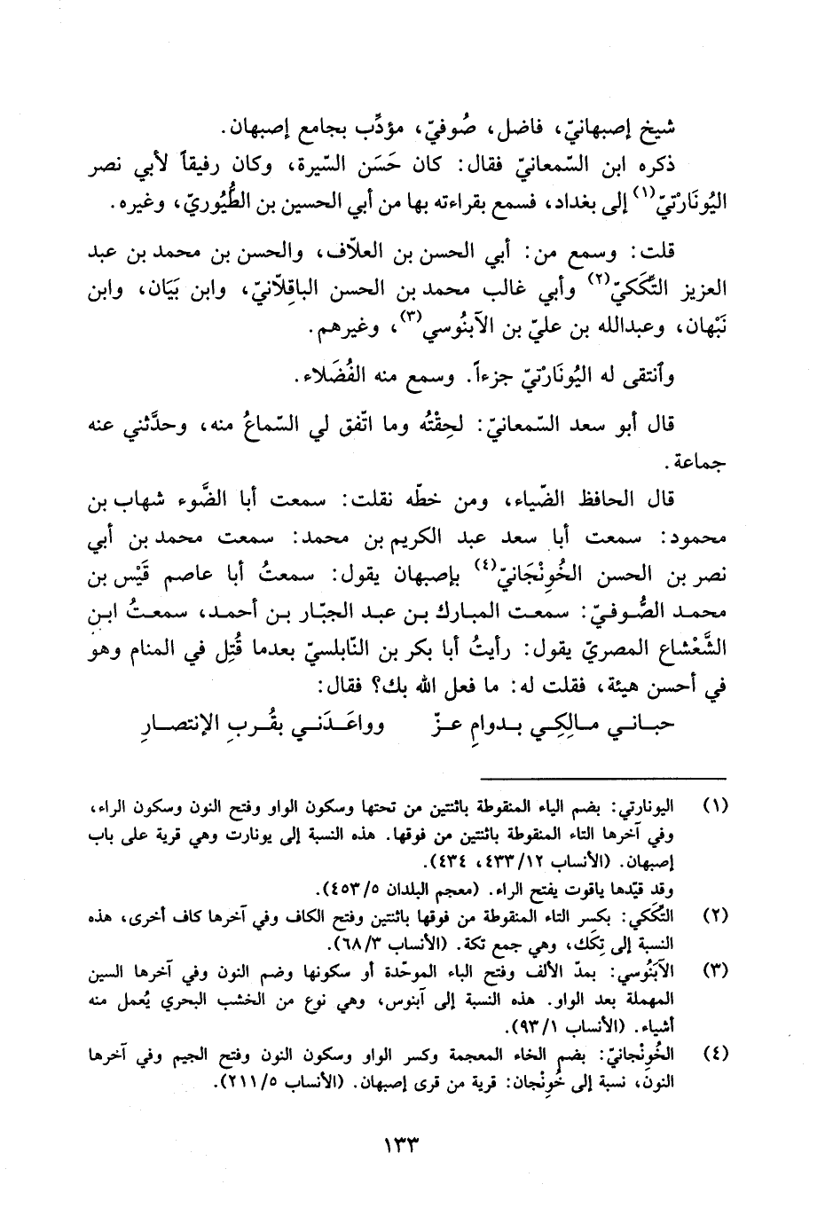 [4] الخونجانيّ: بضم الخاء المعجمة وكسر الواو وسكون النون وفتح الجيم وفي آخرها النون، نسبة إلى خونجان: قرية من قرى أصبهان. (الأنساب 5/ 211) .