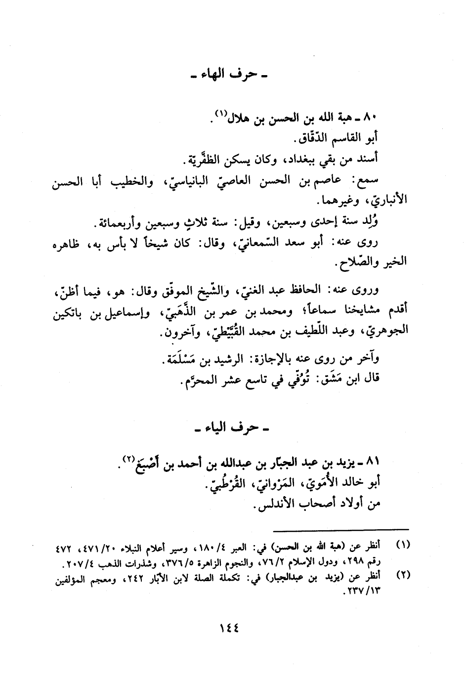 [1] انظر عن (هبة الله بن الحسن) في: العبر 4/ 180، وسير أعلام النبلاء 20/ 471، 472 رقم 298، ودول الإسلام 2/ 76، والنجوم الزاهرة 5/ 376، وشذرات الذهب 4/ 207.