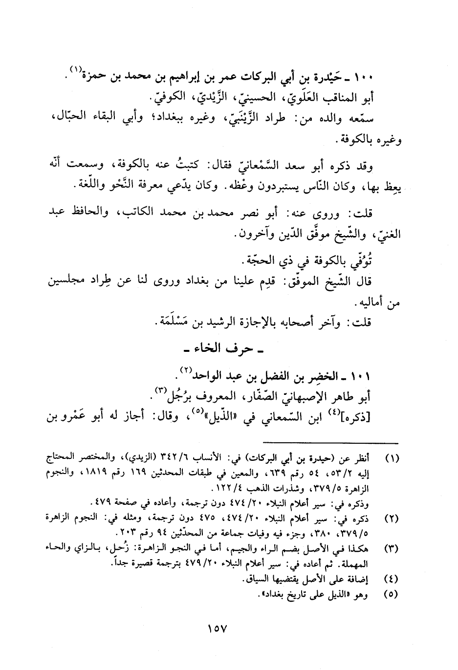 [1] انظر عن (حيدرة بن أبي البركات) في: الأنساب 6/ 342 (الزيدي) ، والمختصر المحتاج إليه 2/ 53، 54 رقم 639، والمعين في طبقات المحدثين 169 رقم 1819، والنجوم الزاهرة 5/ 379، وشذرات الذهب 4/ 122.