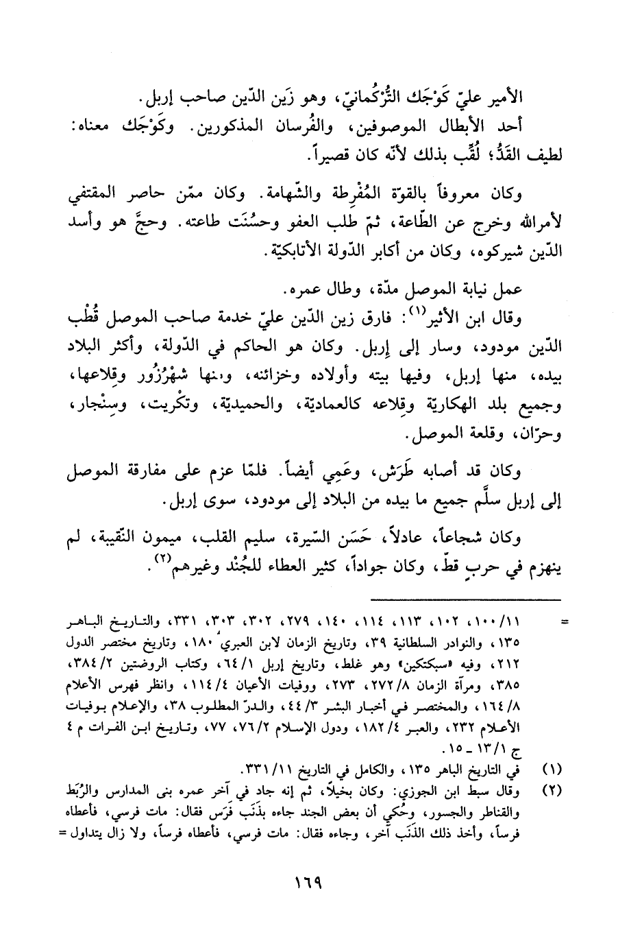 [11] / 100، 102، 113، 114، 140، 279، 302، 303، 331، والتاريخ الباهر 135، والنوادر السلطانية 39، وتاريخ الزمان لابن العبري 180، وتاريخ مختصر الدول 212، وفيه «سبكتكين» وهو غلط، وتاريخ إربل 1/ 64، وكتاب الروضتين 2/ 384، 385، ومرآة الزمان 8/ 272، 273، ووفيات الأعيان 4/ 114، وانظر فهرس الأعلام 8/ 164، والمختصر في أخبار البشر 3/ 44، والدرّ المطلوب 38، والإعلام بوفيات الأعلام 232، والعبر 4/ 182، ودول الإسلام 2/ 76، 77، وتاريخ ابن الفرات م 4 ج 1/ 13- 15.