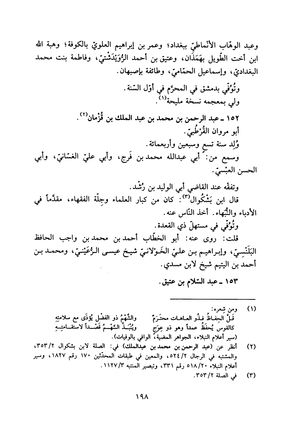 [2] انظر عَنْ (عَبْدِ الرَّحْمَنِ بْنِ مُحَمَّدِ بْنِ عَبْد الملك) في: الصلة لابن بشكوال 2/ 353، والمشتبه في الرجال 2/ 524، والمعين في طبقات المحدّثين 170 رقم 1827، وسير أعلام النبلاء 20/ 518 رقم 331، وتبصير المنتبه 3/ 1127.