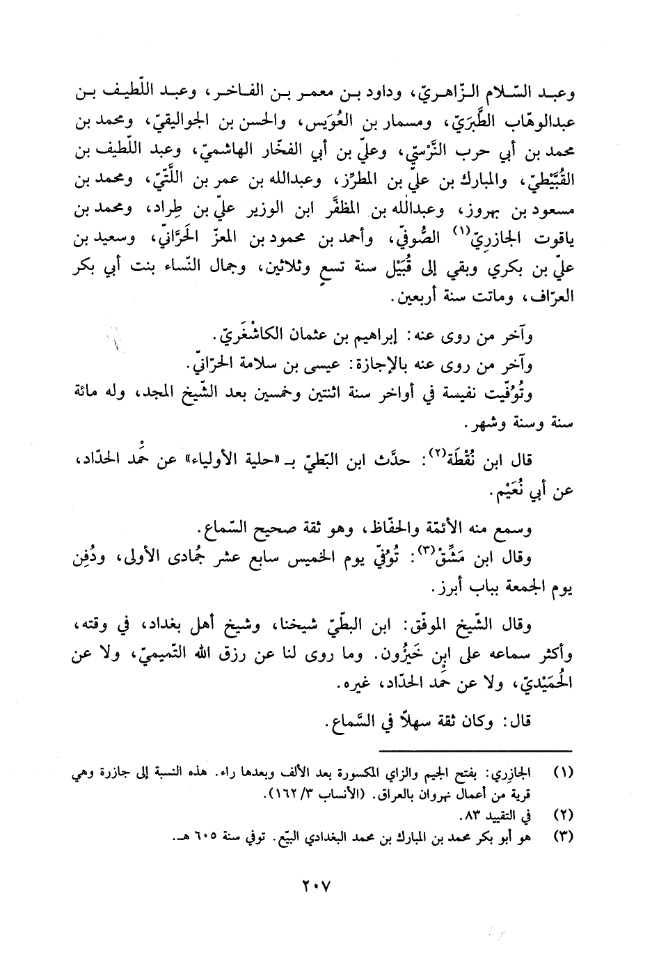 قَالَ ابن نقطة [2] : حدّث ابن البطّيّ ب «حلية الأولياء» عَنْ حَمْد الحدّاد، عَنْ أَبِي نُعَيْم.