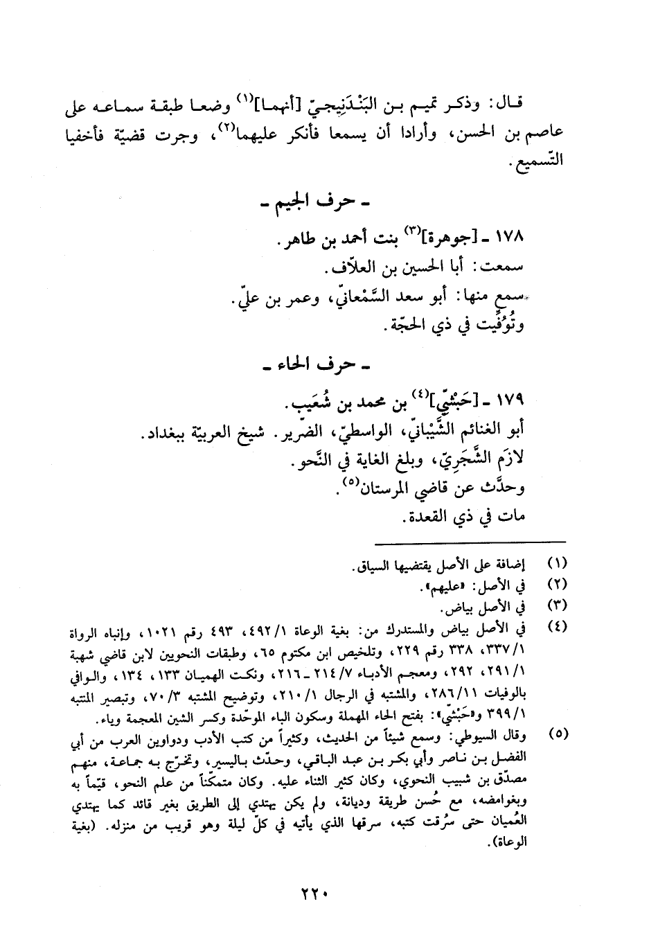 [4] في الأصل بياض والمستدرك من: بغية الوعاة 1/ 492، 493 رقم 1021، وإنباه الرواة 1/ 337، 338 رقم 229، وتلخيص ابن مكتوم 65، وطبقات النحويين لابن قاضي شهبة 1/ 291، 292، ومعجم الأدباء 7/ 214- 216، ونكت الهميان 133، 134، والوافي بالوفيات 11/ 286، والمشتبه في الرجال 1/ 210، وتوضيح المشتبه 3/ 70، وتبصير المنتبه 1/ 399 و «حبشيّ» : بفتح الحاء المهملة وسكون الباء الموحّدة وكسر الشين المعجمة وياء.