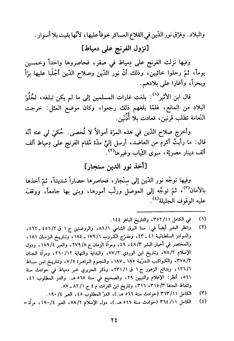 [4] الكامل 11/ 364 (حوادث سنة 566 هـ.) ، دول الإسلام 2/ 78، العبر 4/ 190، مرآة