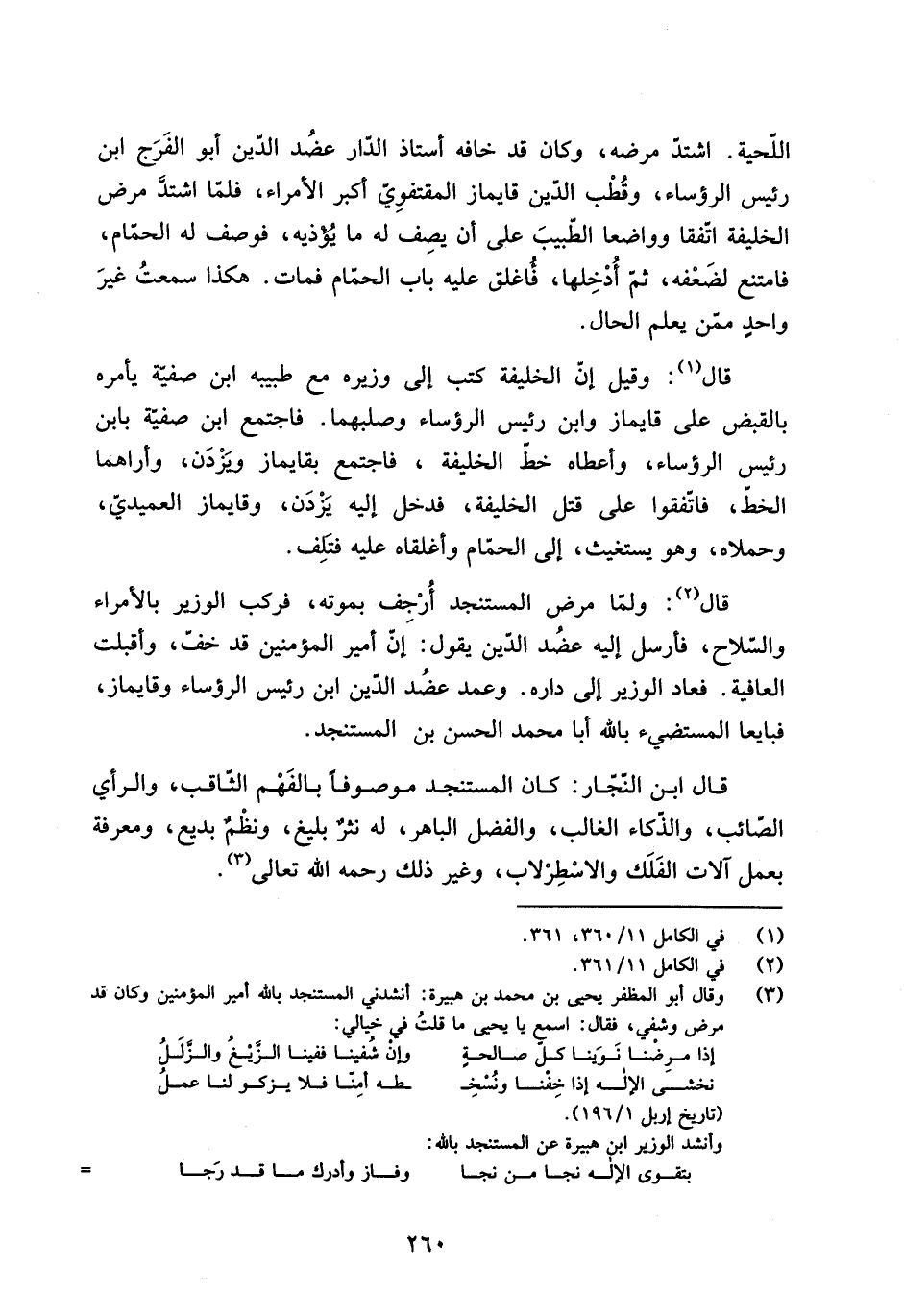 وأنشد الوزير ابن هبيرة عن المستنجد باللَّه: