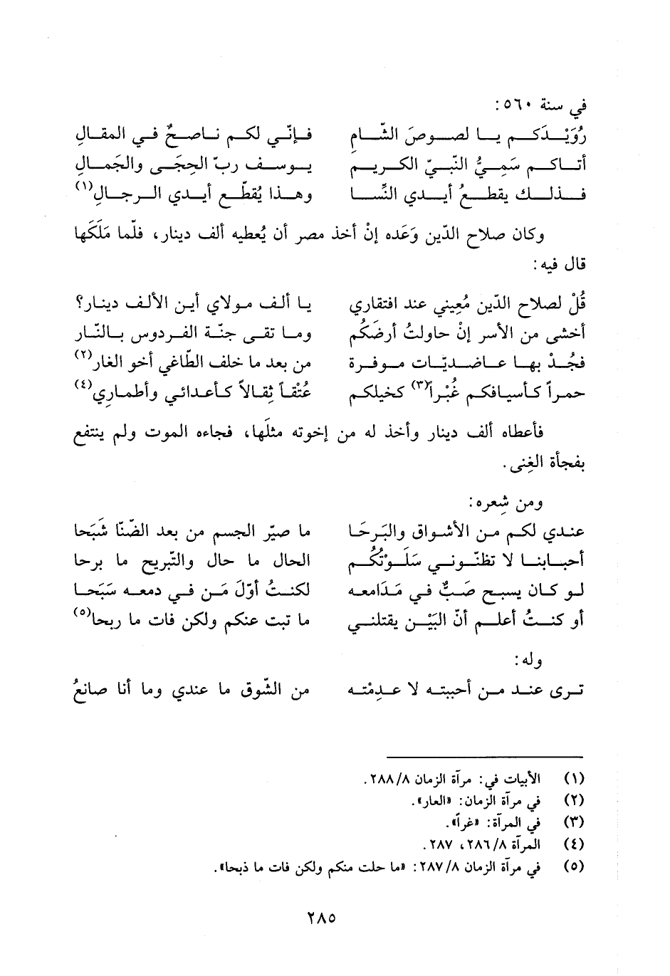 [5] في مرآة الزمان 8/ 287: «ما حلت منكم ولكن فات ما ذبحا» .