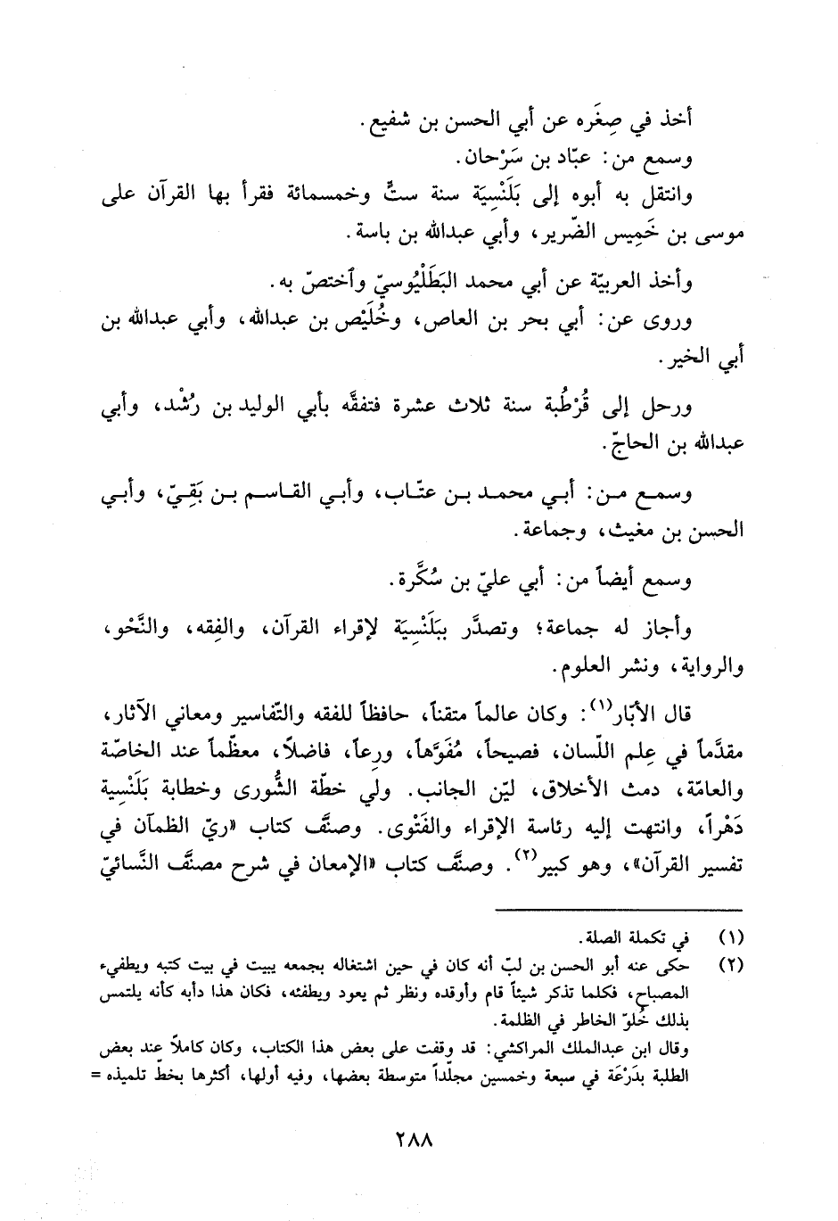 وقال ابن عبد الملك المراكشي: قد وقفت على بعض هذا الكتاب، وكان كاملا عند بعض الطلبة بدرعة في سبعة وخمسين مجلّدا متوسطة بعضها، وفيه أولها، أكثرها بخطّ تلميذه