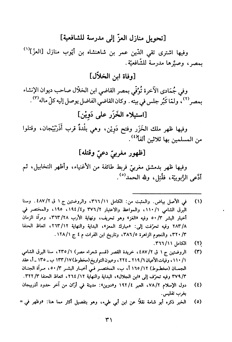 [4] دول الإسلام 2/ 78، العبر 4/ 192 و «دوين» : مدينة في أرّان من آخر حدود أذربيجان بغرب تفليس.