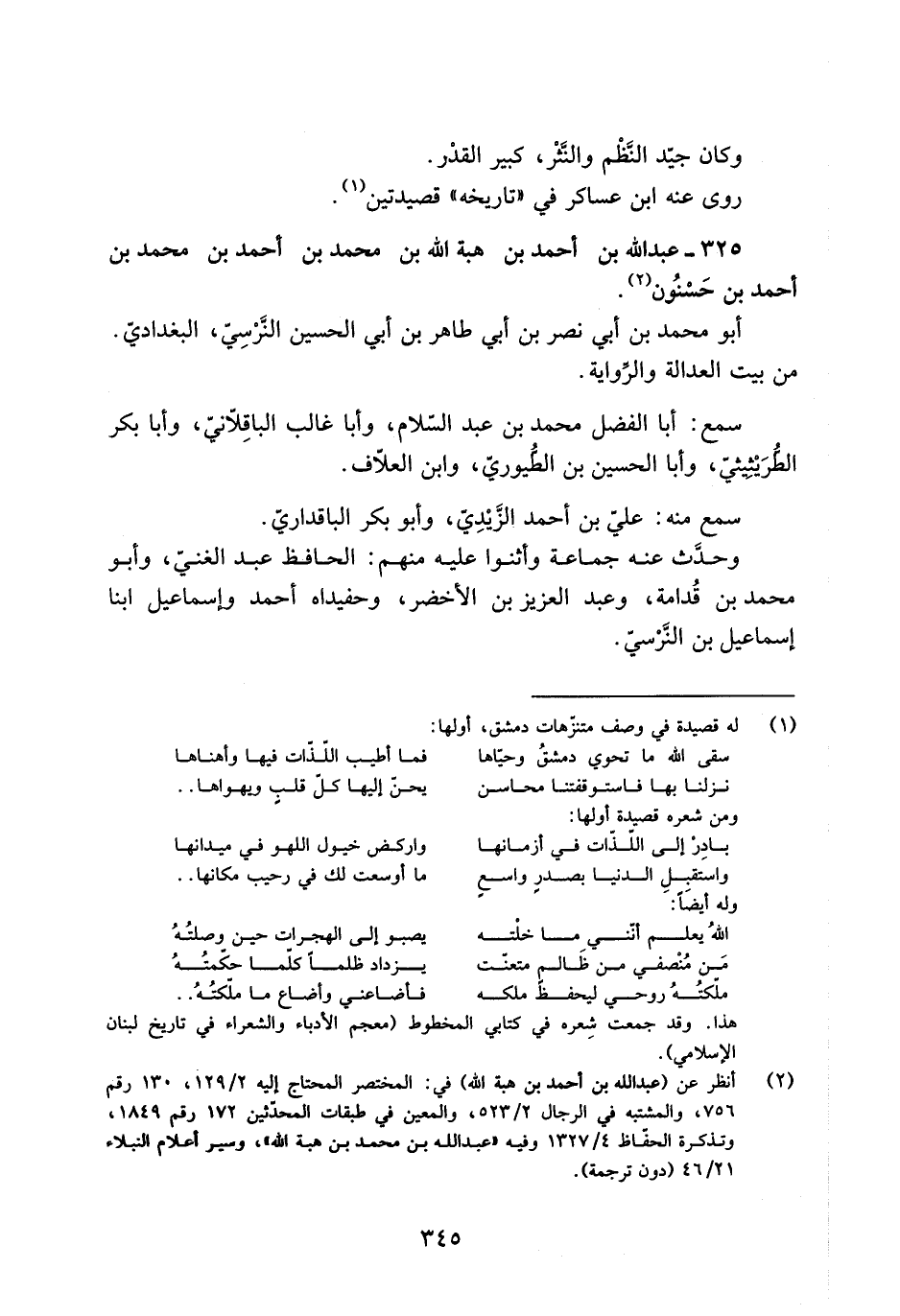 325- عَبْد اللَّه بْن أَحْمَد بْن هِبَة اللَّه بْن محمد بْن أَحْمَد بْن مُحَمَّد بْن أَحْمَد بْن حَسْنُونَ [2] .