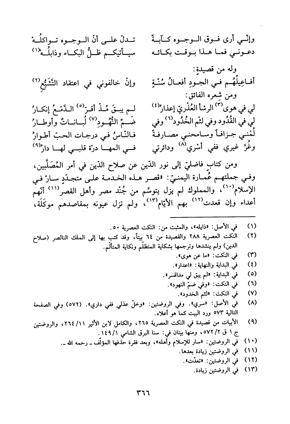 [9] الأبيات من قصيدة في النكت العصرية 265، والكامل لابن الأثير 11/ 264، والروضتين ج 1 ق 2/ 572، ومنها بيتان في: سنا البرق الشامي 1/ 149.