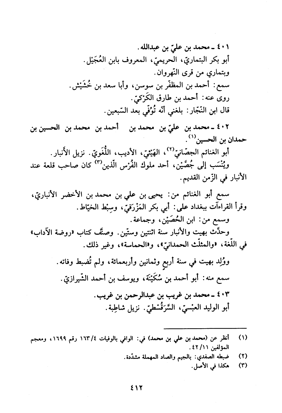 402- مُحَمَّد بْن عَلِيّ بْن مُحَمَّد بْن أَحْمَد بن مُحَمَّد بْن الْحُسَيْن بْن حمدان بْن الْحُسَيْن [1] .