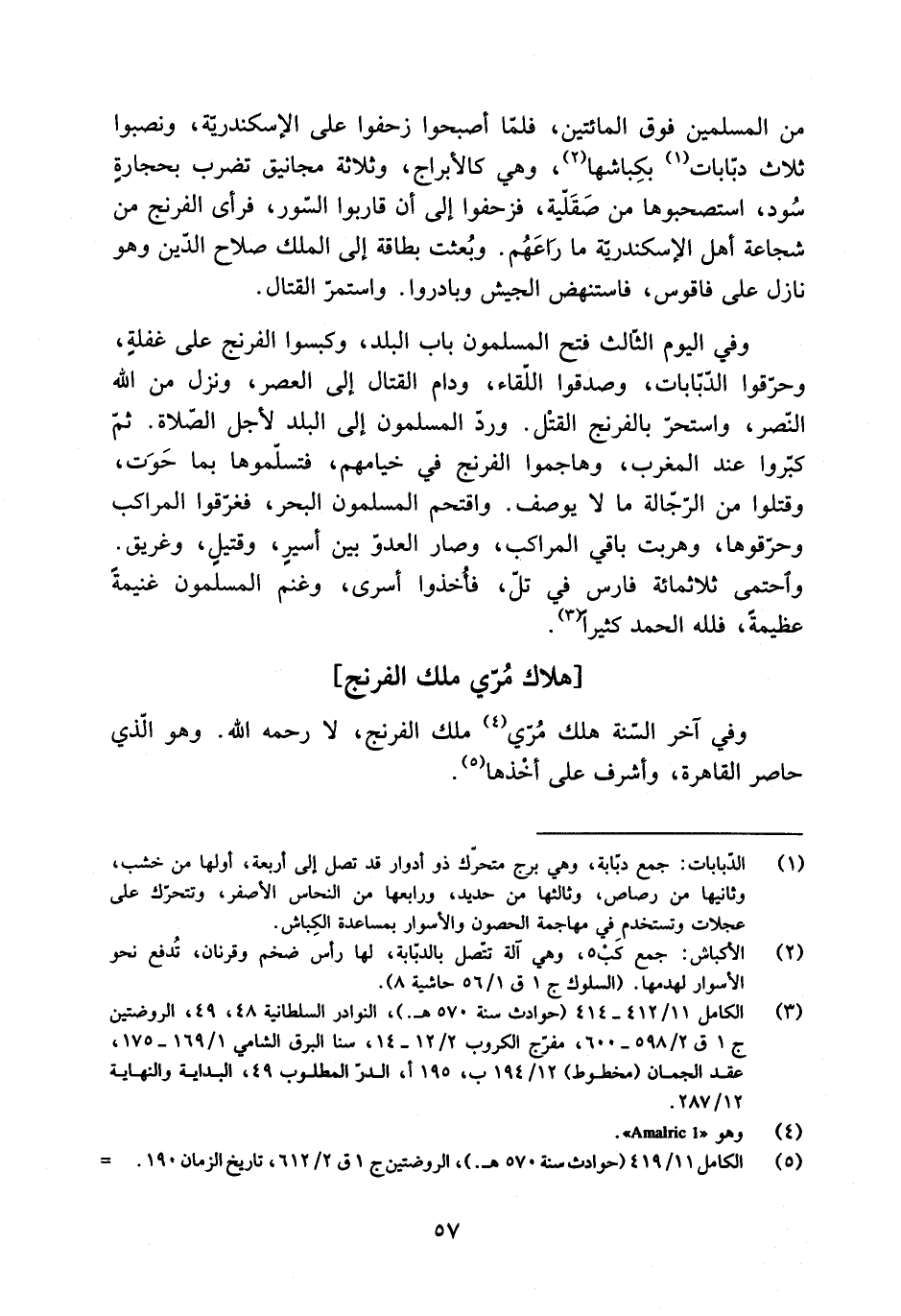 [5] الكامل 11/ 419 (حوادث سنة 570 هـ.) ، الروضتين ج 1 ق 2/ 612، تاريخ الزمان 190.