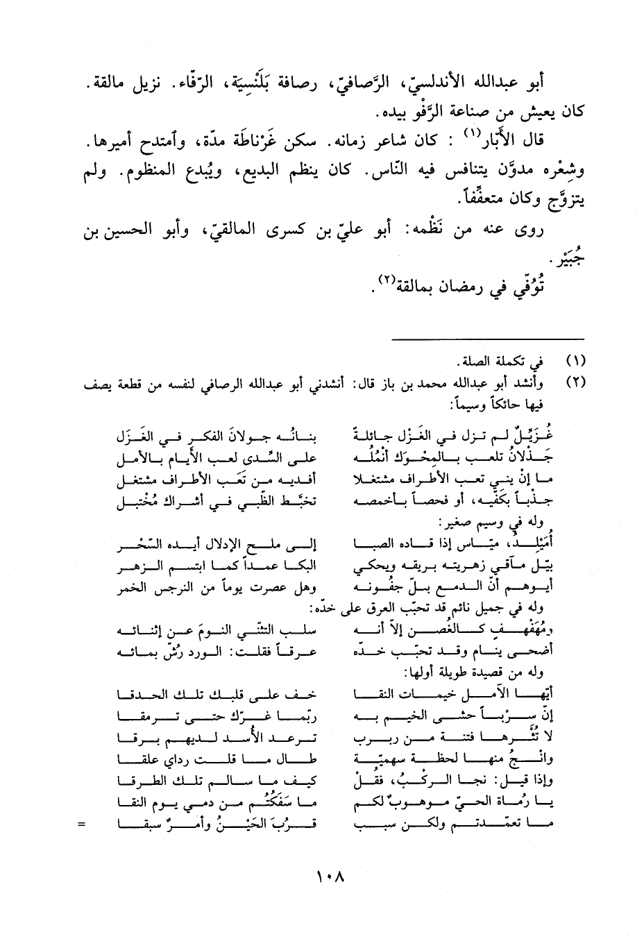 أَبُو عَبْد اللَّه الأندلسيّ، الرّصافيّ، رصافة بَلَنْسِية، الرّفّاء. نزيل مالقة.