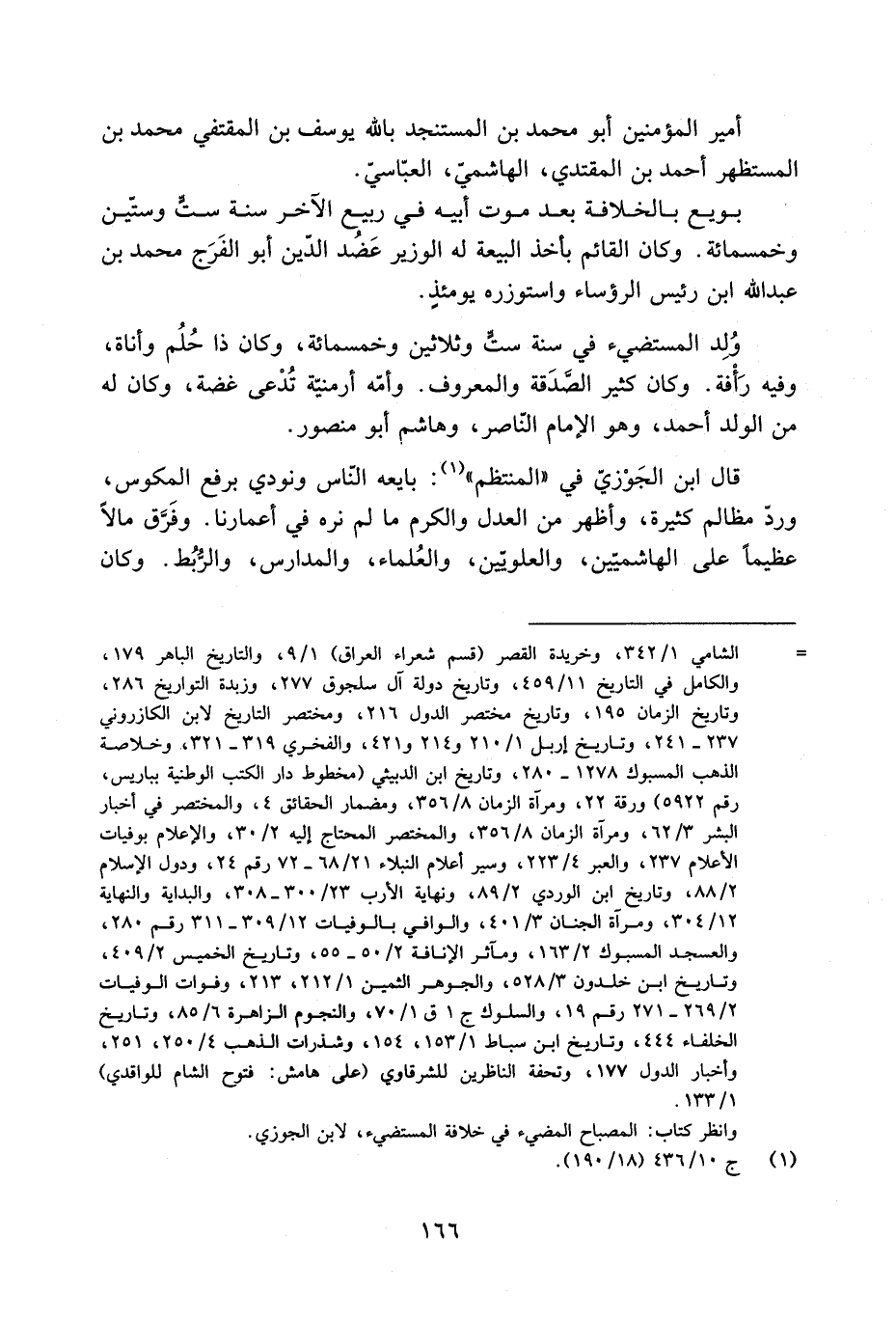 وانظر كتاب: المصباح المضيء في خلافة المستضيء، لابن الجوزي.