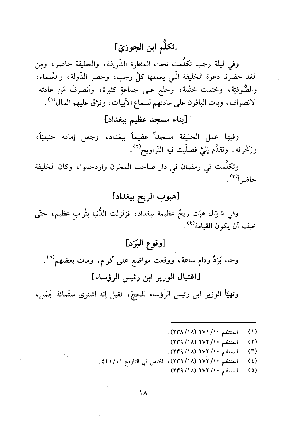 [4] المنتظم 10/ 272 (18/ 239) ، الكامل في التاريخ 11/ 446.