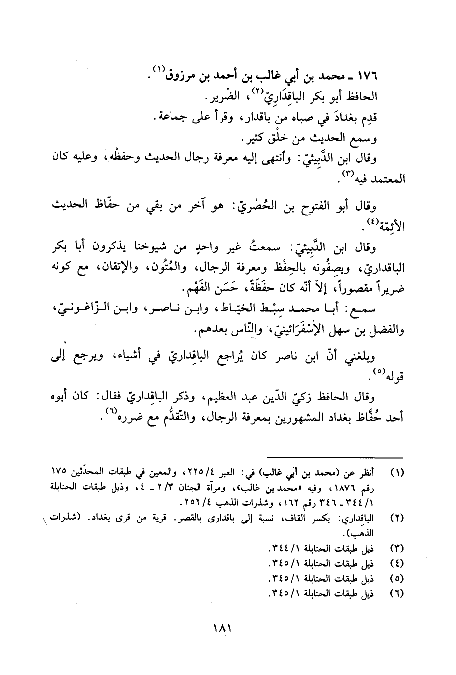 [2] الباقداري: بكسر القاف، نسبة إلى باقدارى بالقصر. قرية من قرى بغداد. (شذرات الذهب) .