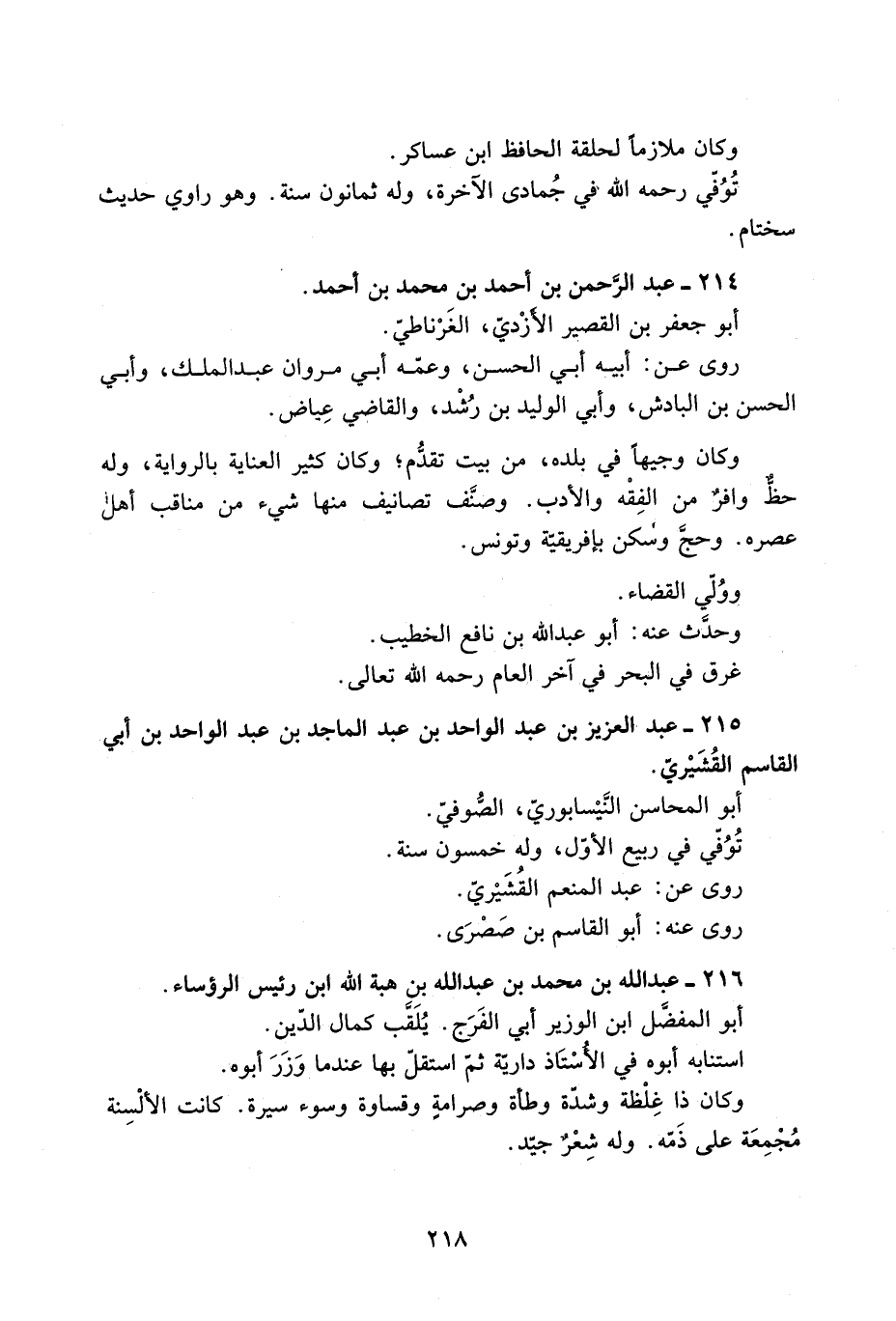 216- عَبْدِ اللَّهِ بْنِ مُحَمَّدِ بْنِ عَبْدِ اللَّهِ بْن هبة اللَّه ابْن رئيس الرؤساء.