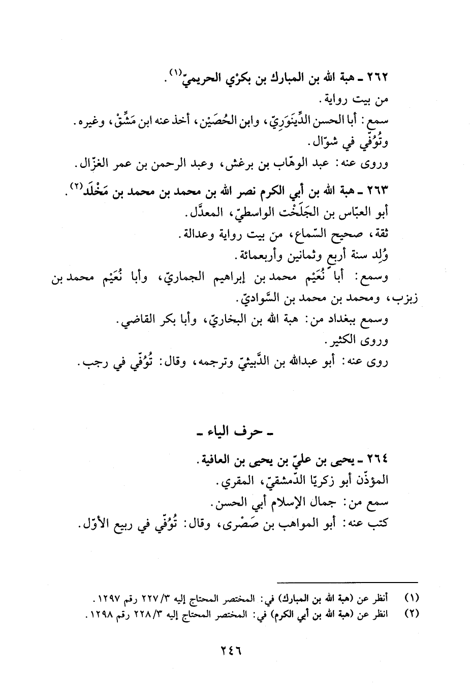 [2] انظر عن (هبة الله بن أبي الكرم) في: المختصر المحتاج إليه 3/ 228 رقم 1298.
