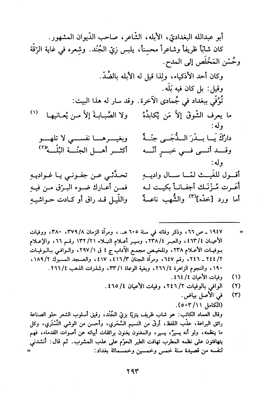 [ (- 1947-) ] ص 66، وذكر وفاته في سنة 605 هـ.، ومرآة الزمان 8/ 379، 380، ووفيات الأعيان 4/ 463، والعبر 4/ 238، وسير أعلام النبلاء 21/ 132 رقم 66، والإعلام بوفيات الأعلام 238، وتلخيص مجمع الآداب ج 4 ق 1/ 297، والوافي بالوفيات 2/ 244- 246، رقم 647، ومرآة الجنان 3/ 416، 417، والعسجد المسبوك 2/ 189، 190، والنجوم الزاهرة 4/ 266، وبغية الوعاة 1/ 33، وشذرات الذهب 4/ 266.