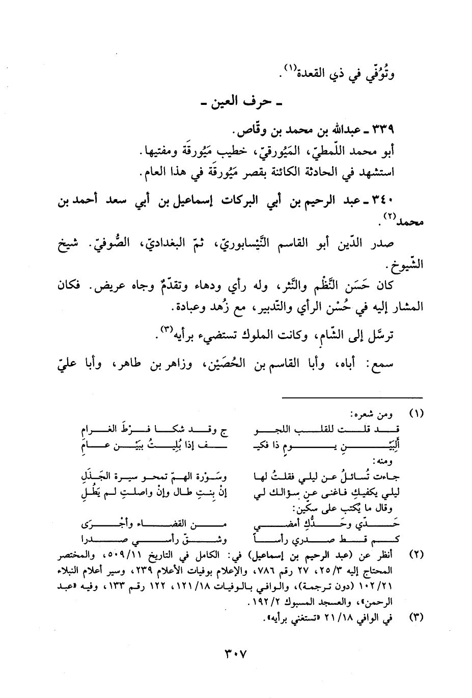340- عَبْد الرحيم بْن أَبِي البركات إِسْمَاعِيل بْن أَبِي سعد أَحْمَد بْن مُحَمَّد [2] .