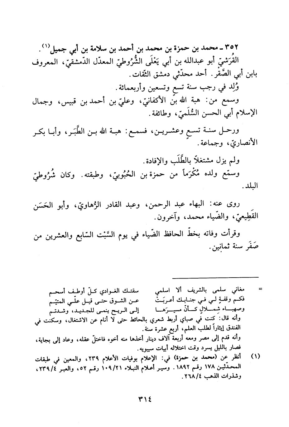 352- مُحَمَّد بْن حمزة بْن مُحَمَّد بْن أَحْمَد بْن سلامة بْن أَبِي جميل [1] .