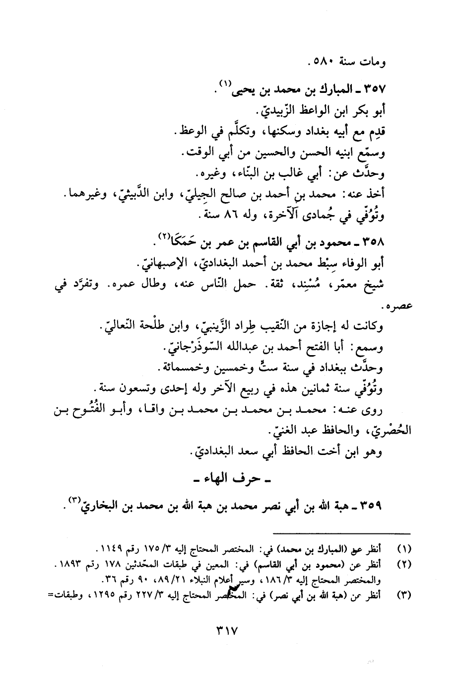 [3] انظر عن (هبة الله بن أبي نصر) في: المختصر المحتاج إليه 3/ 227 رقم 1295، وطبقات-