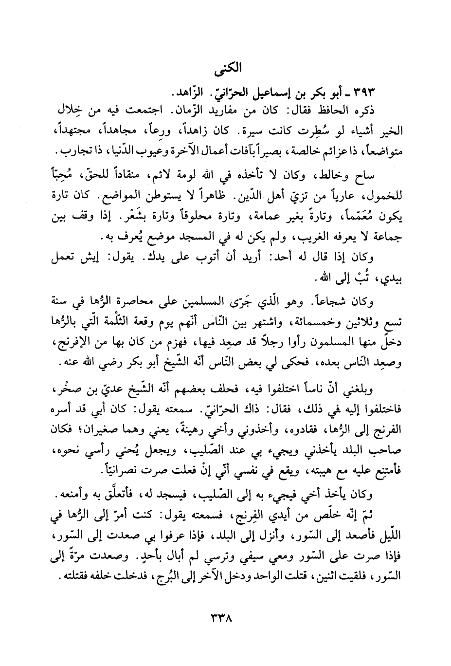 393- أَبُو بَكْر بْن إِسْمَاعِيل الحرّانيّ. الزّاهد.