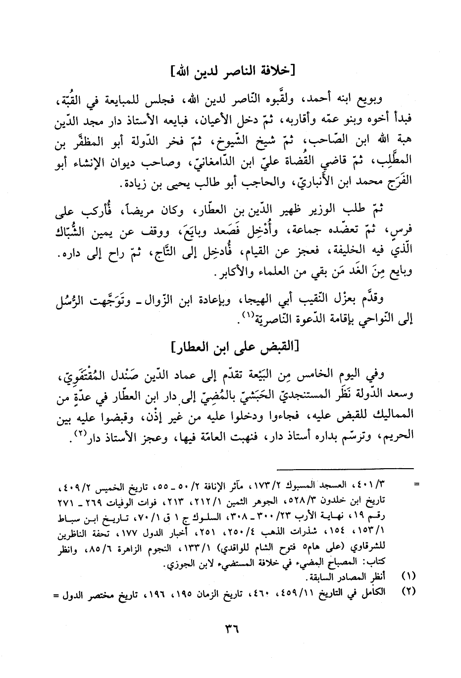 [2] الكامل في التاريخ 11/ 459، 460، تاريخ الزمان 195، 196، تاريخ مختصر الدول-