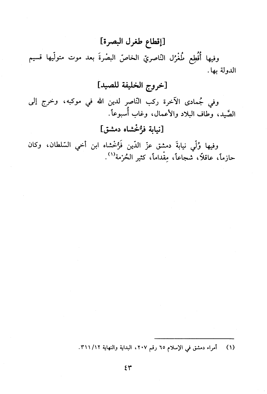 [1] أمراء دمشق في الإسلام 65 رقم 207، البداية والنهاية 12/ 311.