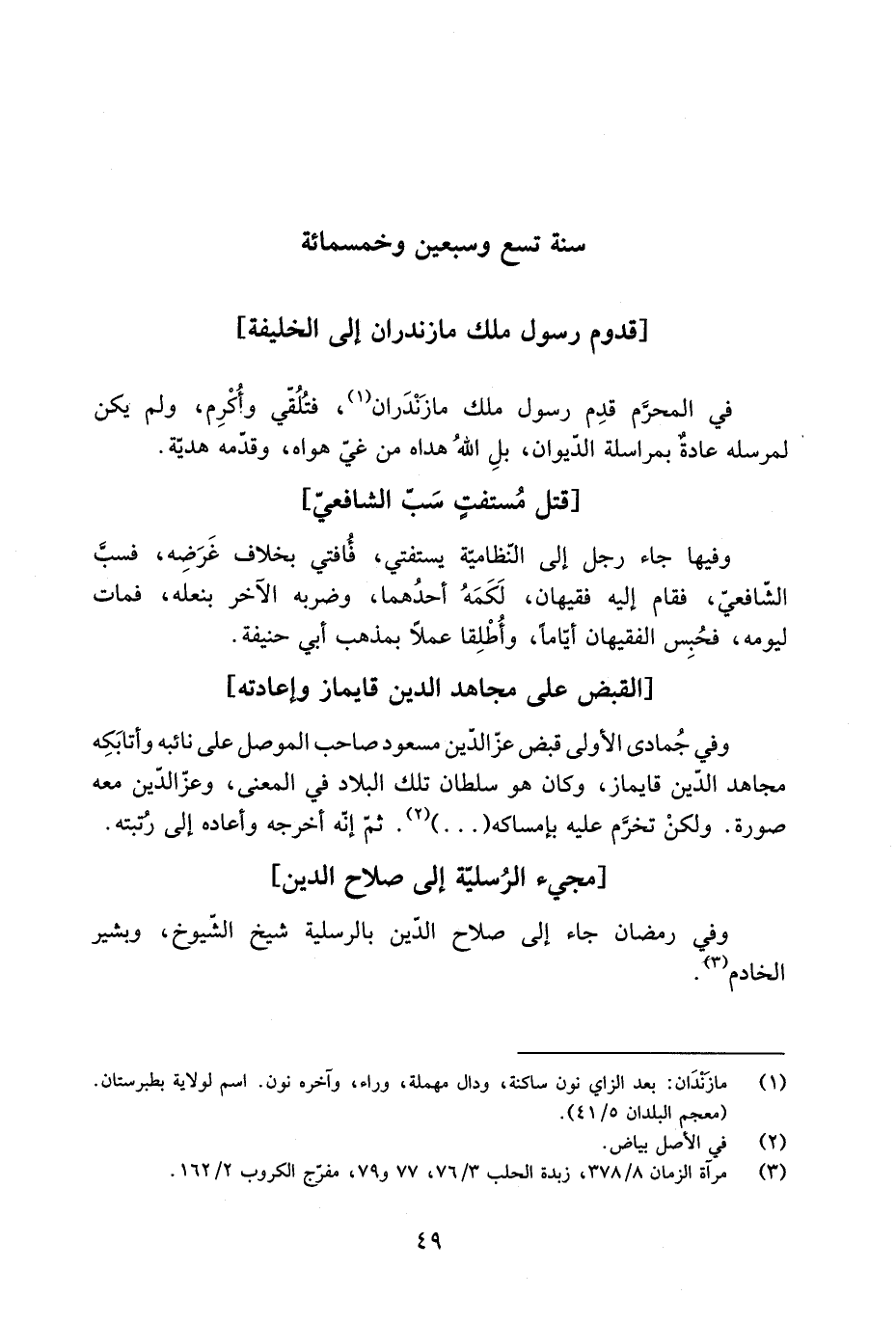 [3] مرآة الزمان 8/ 378، زبدة الحلب 3/ 76، 77 و 79، مفرّج الكروب 2/ 162.