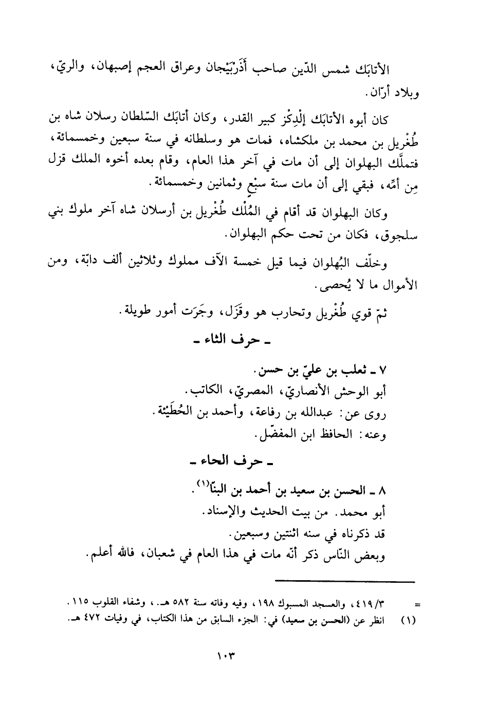 [1] انظر عن (الحسن بن سعيد) في: الجزء السابق من هذا الكتاب، في وفيات 472 هـ.