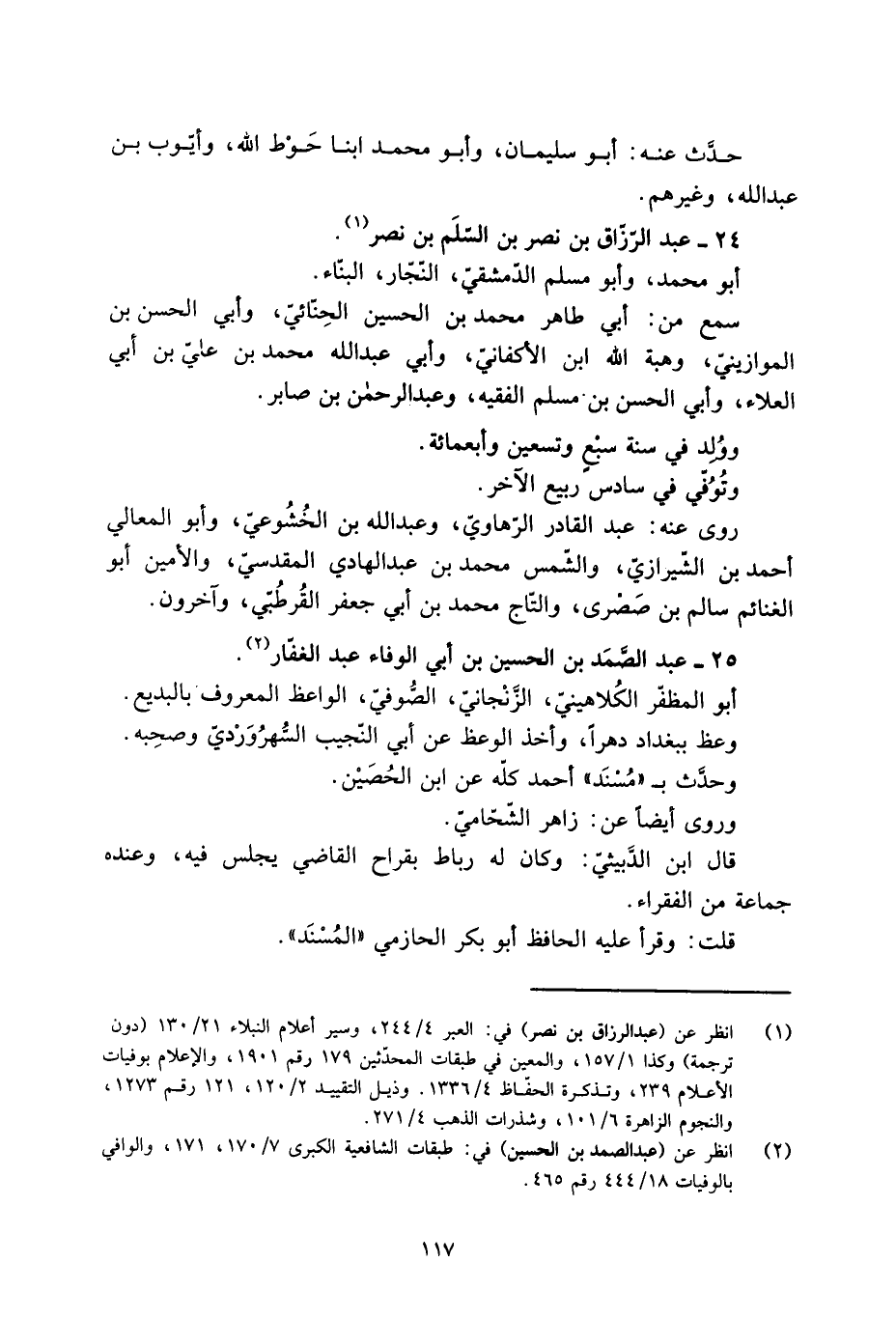 25- عَبْد الصَّمَد بْن الْحُسَيْن بْن أَبِي الوفاء عَبْد الغفّار [2] .